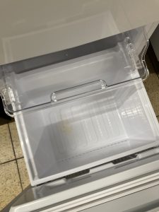 他社の冷蔵庫にはない、冷凍庫を開いた時に上段の引き出しも一緒に出てくる仕組みになってます✌