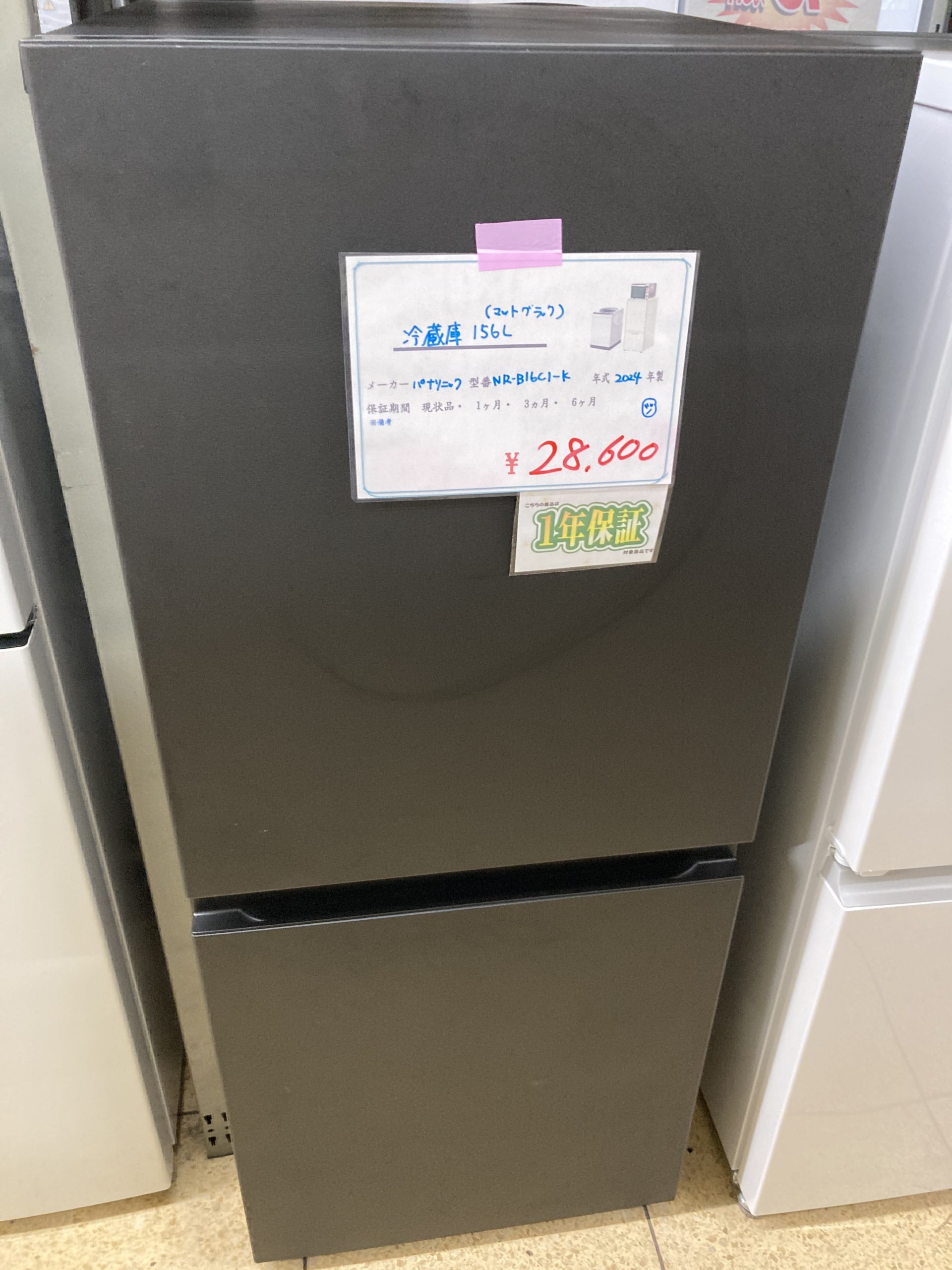 冷蔵庫156Lサイズ 色マットブラック メーカーPanasonic 年式2024